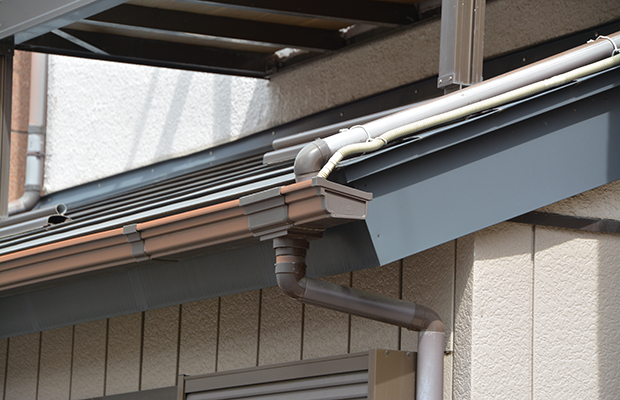 「雨が降ると雨樋から雨が溢れ出ている」